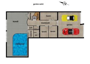 A házban minden megtalálható, amire egy többgyermekes családnak szüksége lehet, teraszkapcsolatos nappali, tágas és világos szobák, több fürdő, tároló-és háztartási helyiségek, medence, szauna, dupla garázs, magas műszaki tartalom, mindez minőségi kivitelezésben.